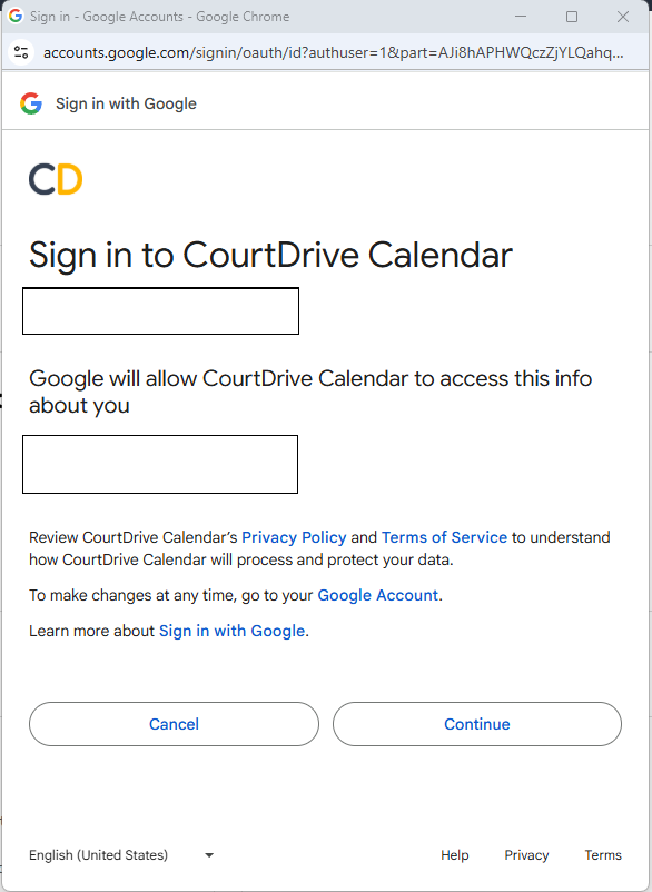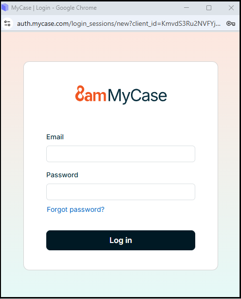 Connecting MyCase/MyCase Calendar requires you to authorize and log in, so that CourtDrive can map cases and upload documents.